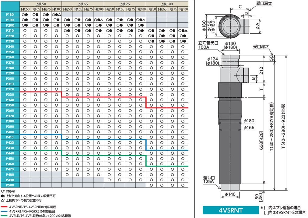 P25 2段枝モデル P寸法対応表、P30 4VSRNTの図面を