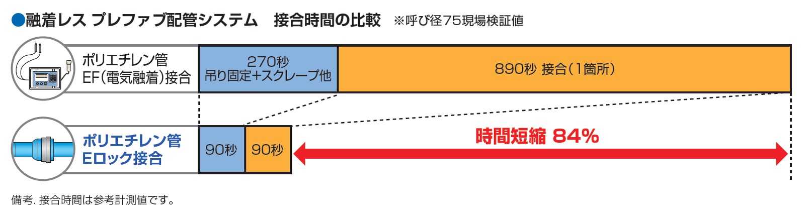 ことで、EF接合と比較して接合時間を84%短縮※。施工現場の省力化、