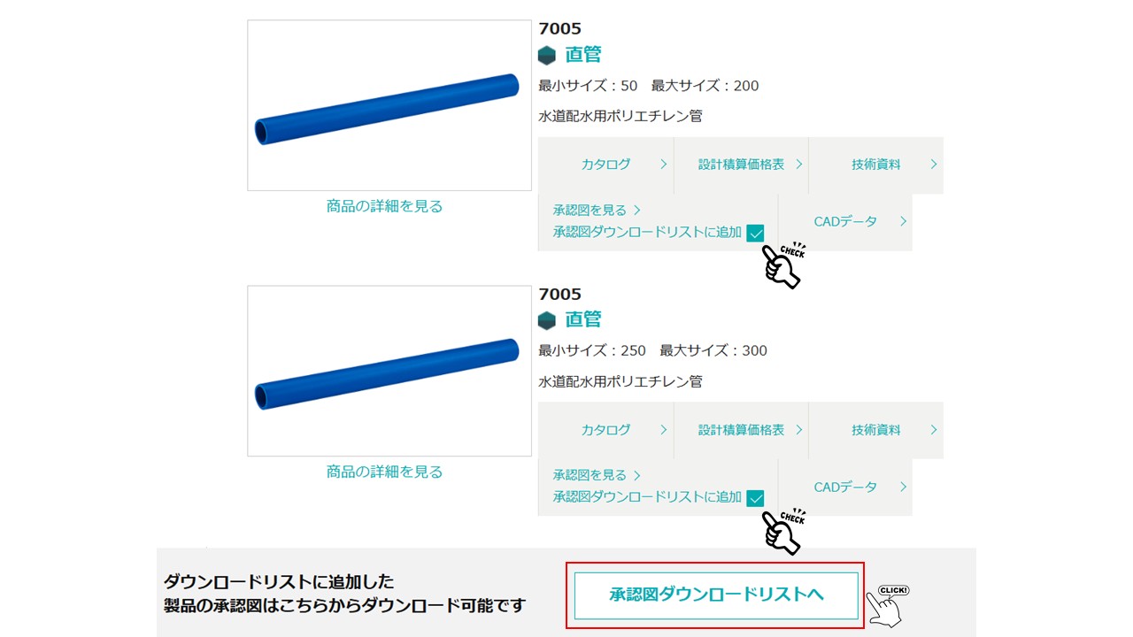 クボタケミックスのホームページでは、承認図をまとめてダウンロードする