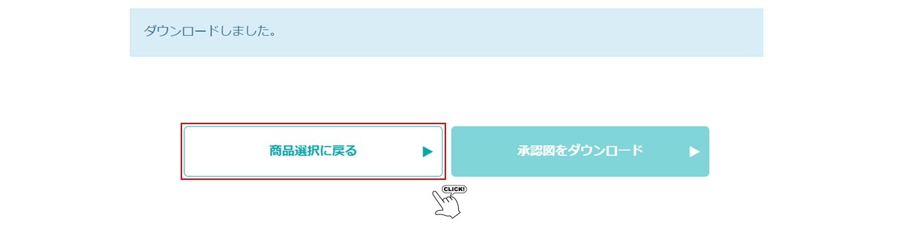 続けて承認図を検索・ダウンロードする場合は、「商品選択に戻る」を