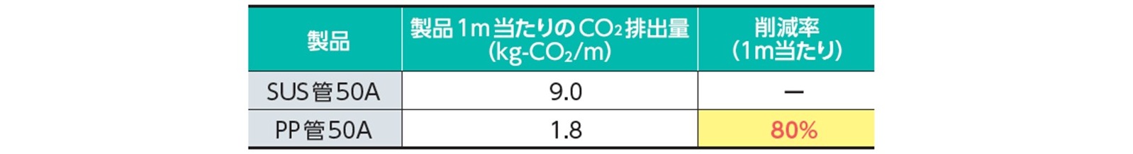 従来品(SUS管)と比べて、製造時に発生するCO2排出を80%削減!