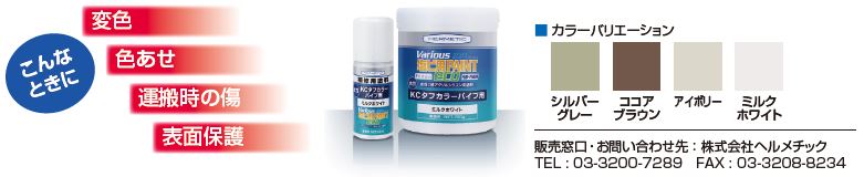 HTVP管・HTDV継手の外装を耐候性カラー樹脂で覆った2層成形の耐熱・耐候性カラーパイプ、カラー継手です。シルバーグレー、ココアブラウン、アイボリー、ミルクホワイトの4色を品揃えししました。
